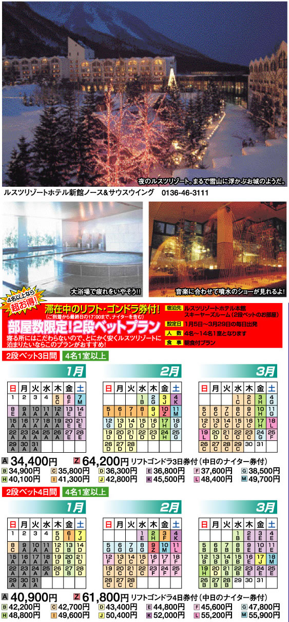 HOME > 北海道格安スキー&ボード > ルスツリゾート > プラン3 ルスツリゾートホテル