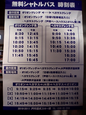 ゲレンデ間の無料シャトルバスで、ペガサスとオリオン間を移動する事もできます。