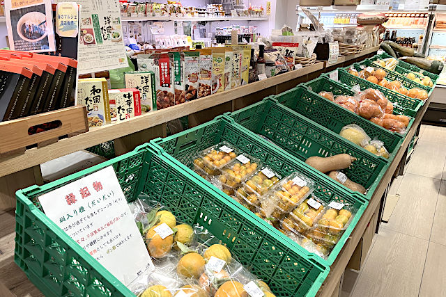 1階はお土産コーナーになっており、地元で採れた新鮮な野菜も並んでいます。