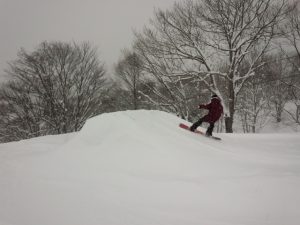 雪に包まれながらボーダーもスキーヤーも気持ち良さそうに滑っていきます。降雪の影響で足を取られやすくなってるので慎重に(;^_^A