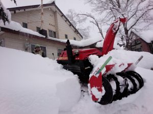 僕らの滞在中はじゃんじゃん雪が降ってましたので(雪男じゃないですよ!)小型の除雪機が大活躍(ゝω・)宿ののまわりに積もった邪魔な雪をどんどん蹴散らす頼もしい存在です(≧∇≦)b