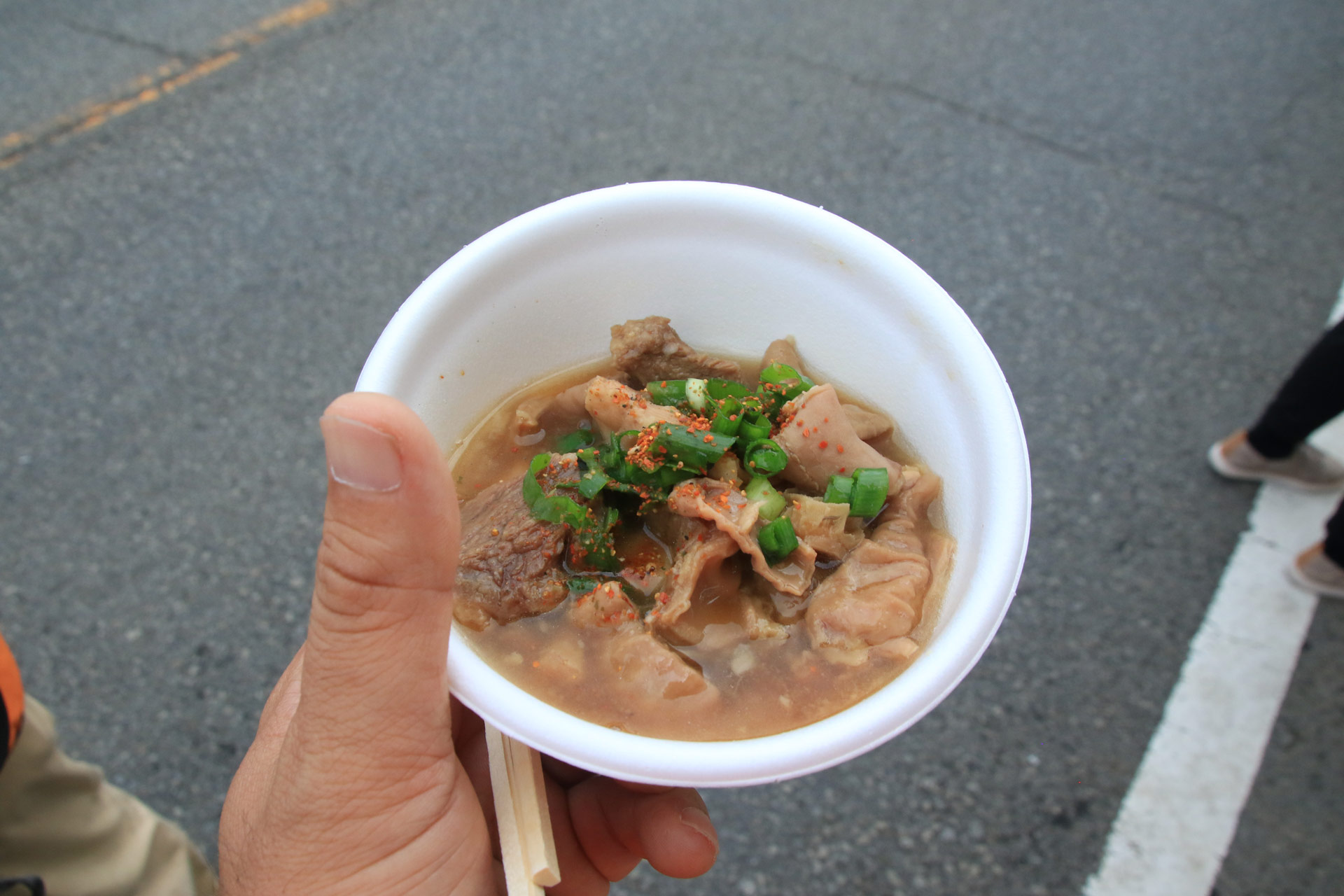 神社のそばにあったお肉屋さんのモツ煮がとてもおいしかったです。 -